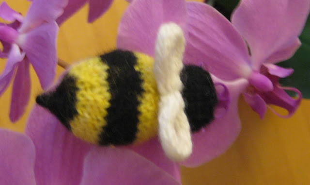 Wings (make 2):CO 4 sts. Work in Icord for 15 rounds and stitch caston to castoff edges, forming a loop. Sew the two wings in a bow type configuration at the neck of the bee body.
